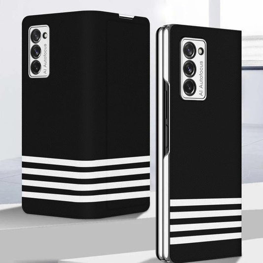 Galaxy Z Fold2 White Stripes Leather Flip Case
