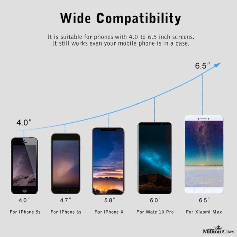 Universal car mount Qi wireless charger with upgraded and latest design. Highly compatible with smartphones supporting wireless charging and screen 4.0 - 6.5 inches.