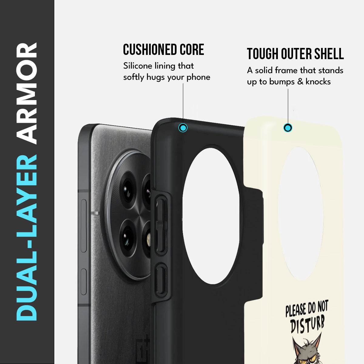 • Dual-Layer Protection: The phone case features silicon cushioning inside and a durable PC exterior outside.