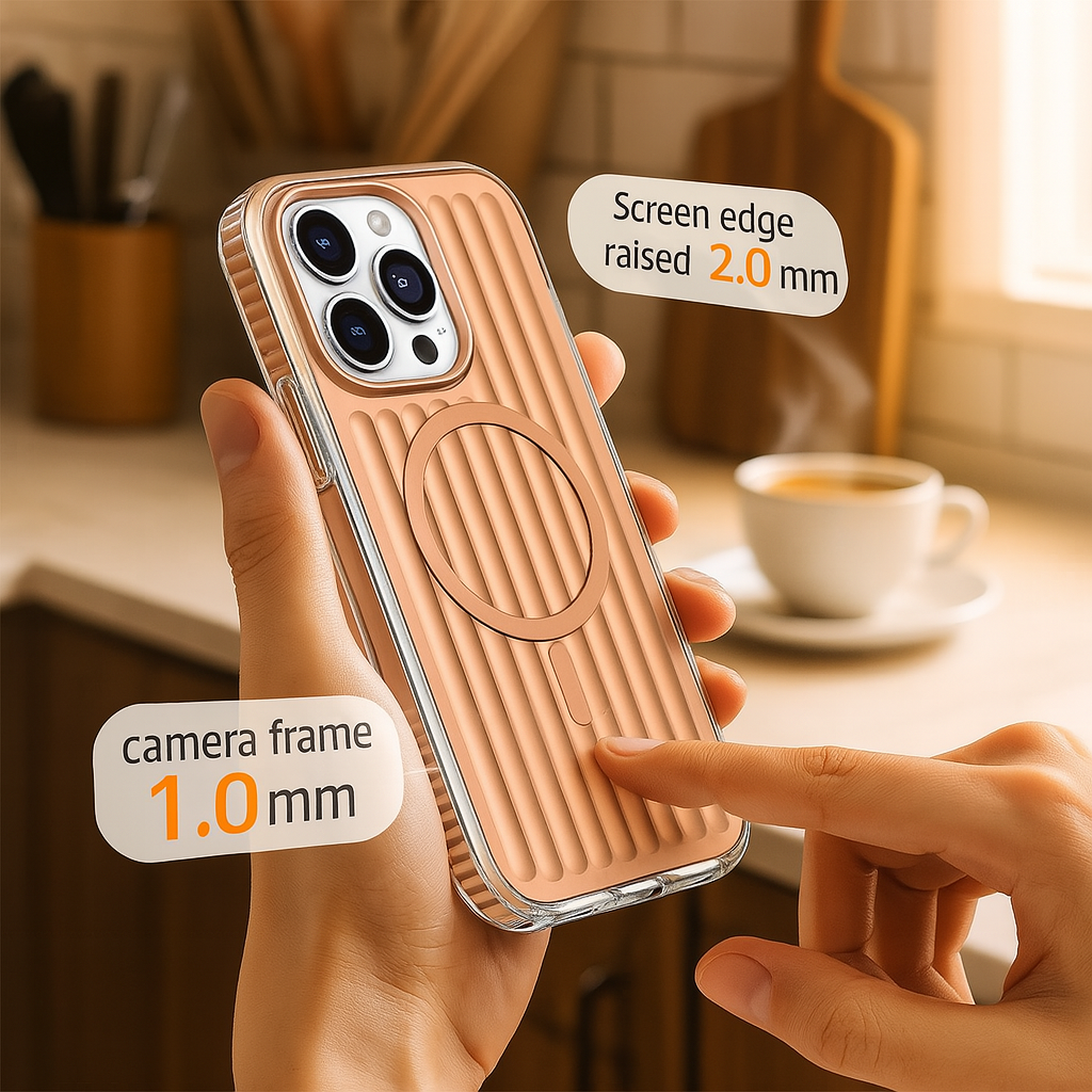The Electro Line Case offers a stylish blend of aesthetics and functionality. Designed with precision grooves for enhanced grip and a sleek finish, this case delivers premium protection while maintaining seamless MagSafe compatibility.