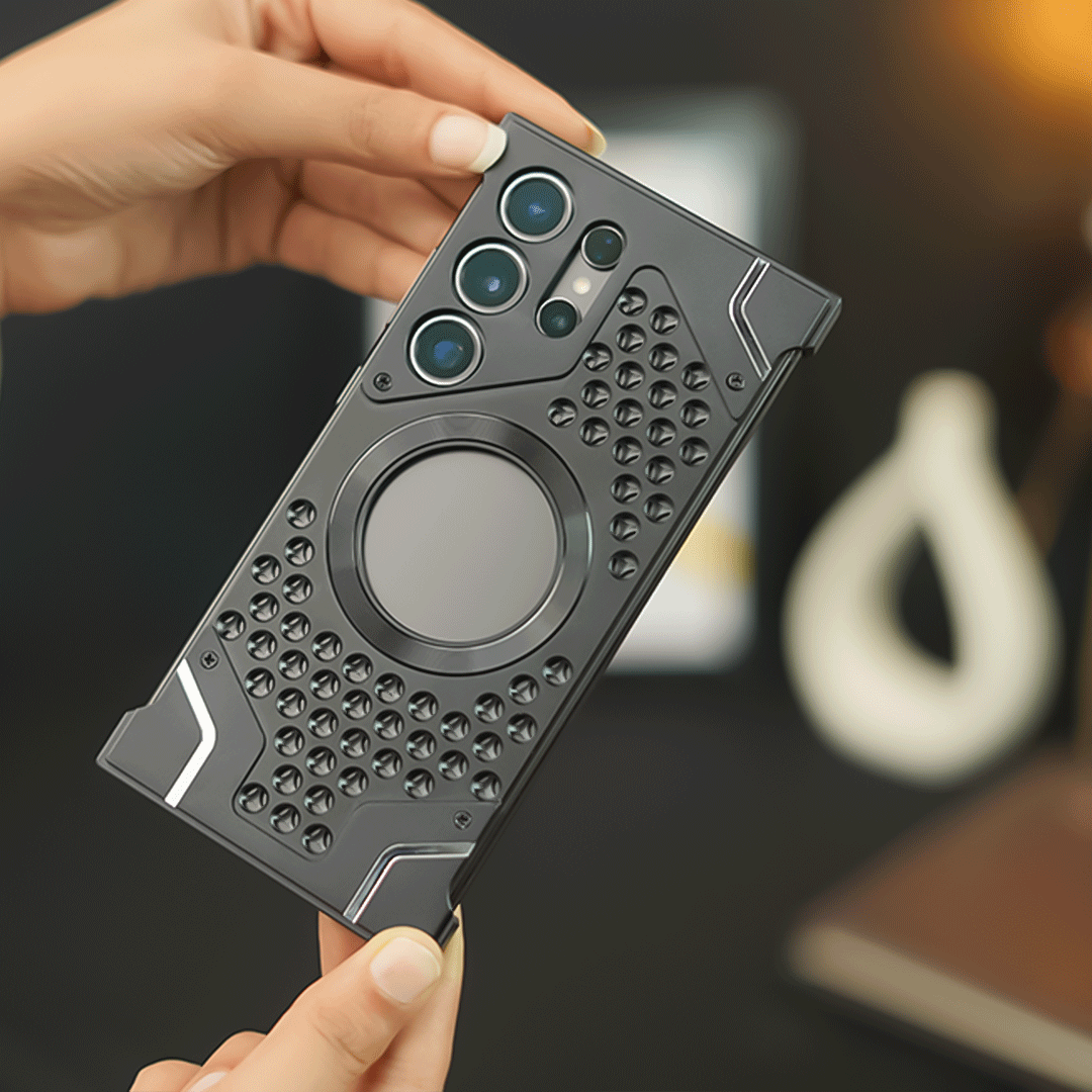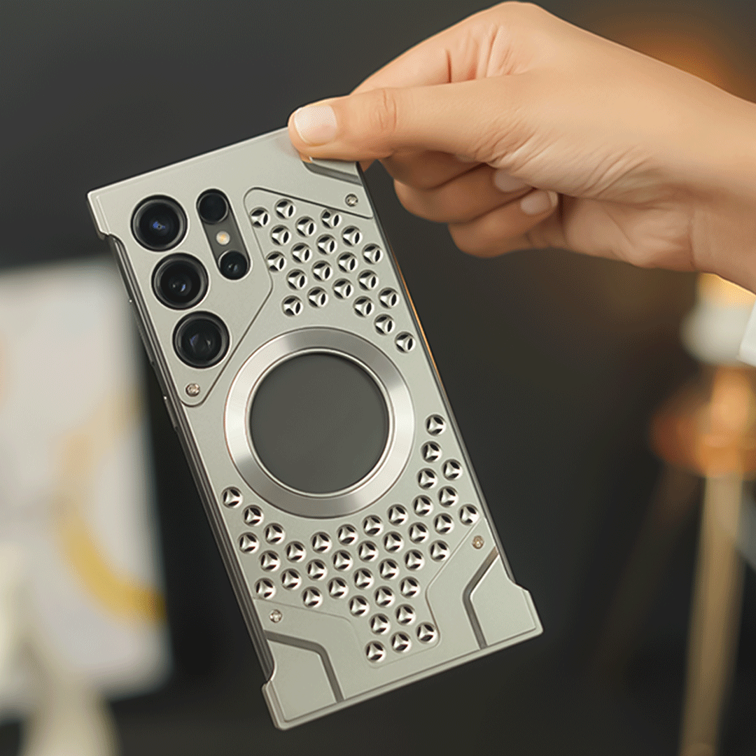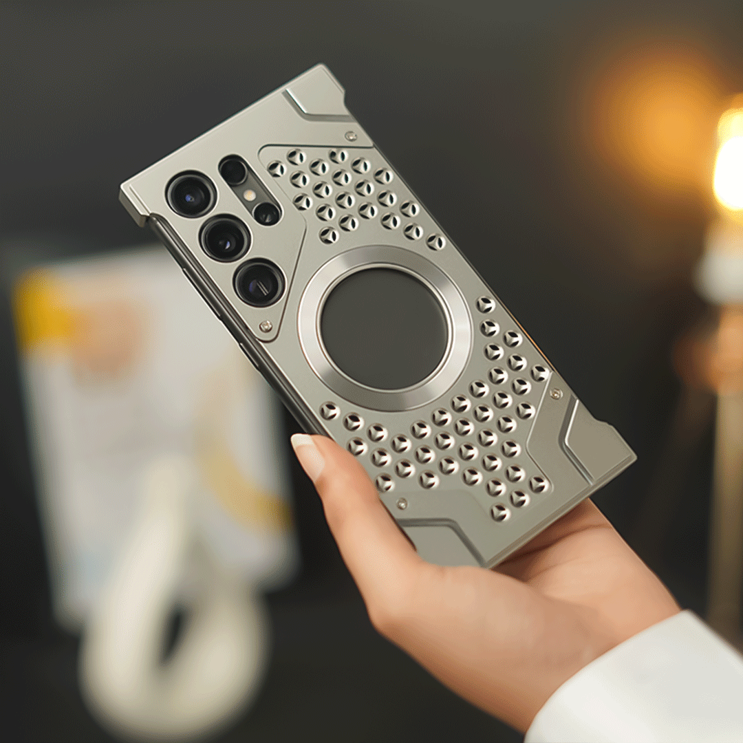 The Elite Alloy Mesh Magnetic Frameless Case is a high-performance phone case designed for superior protection and optimized cooling. Featuring a robust metal alloy frame and an innovative magnetic core, this case is built to withstand the toughest conditions while efficiently dissipating heat. Its sleek design and durable build ensure both style and functionality for any device.