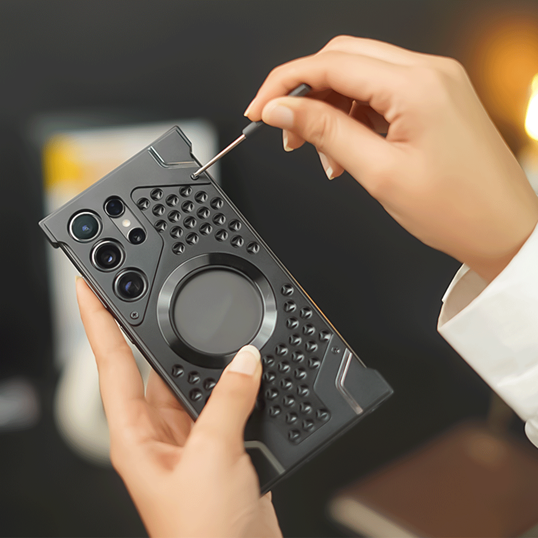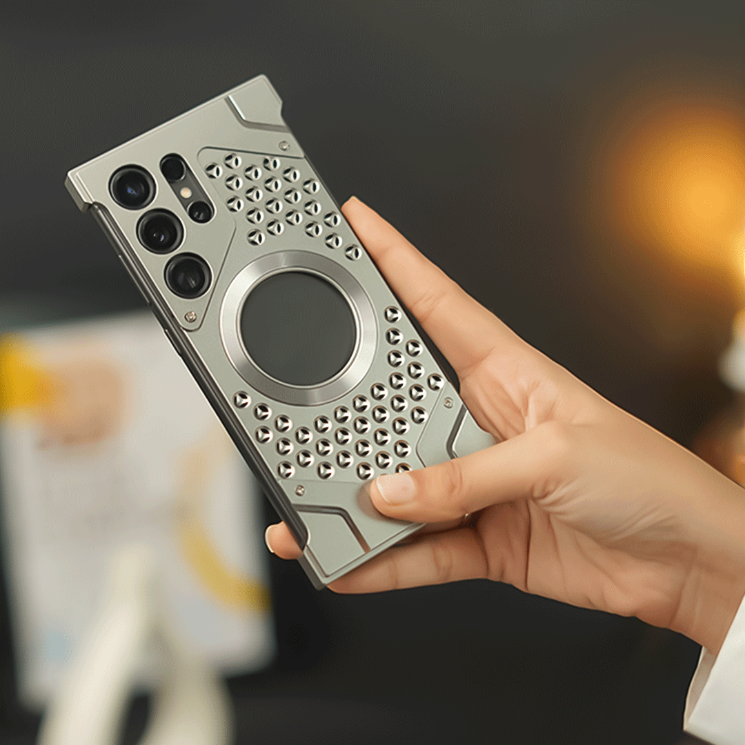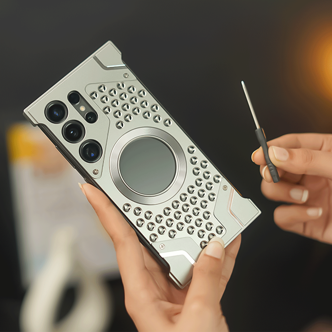 The Elite Alloy Mesh Magnetic Frameless Case is a high-performance phone case designed for superior protection and optimized cooling. Featuring a robust metal alloy frame and an innovative magnetic core, this case is built to withstand the toughest conditions while efficiently dissipating heat. Its sleek design and durable build ensure both style and functionality for any device.
