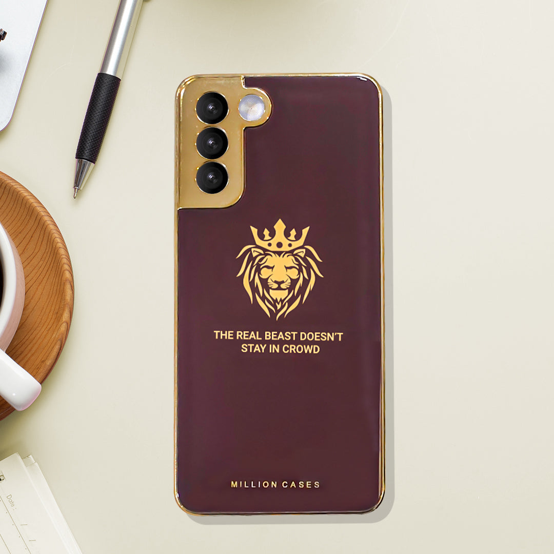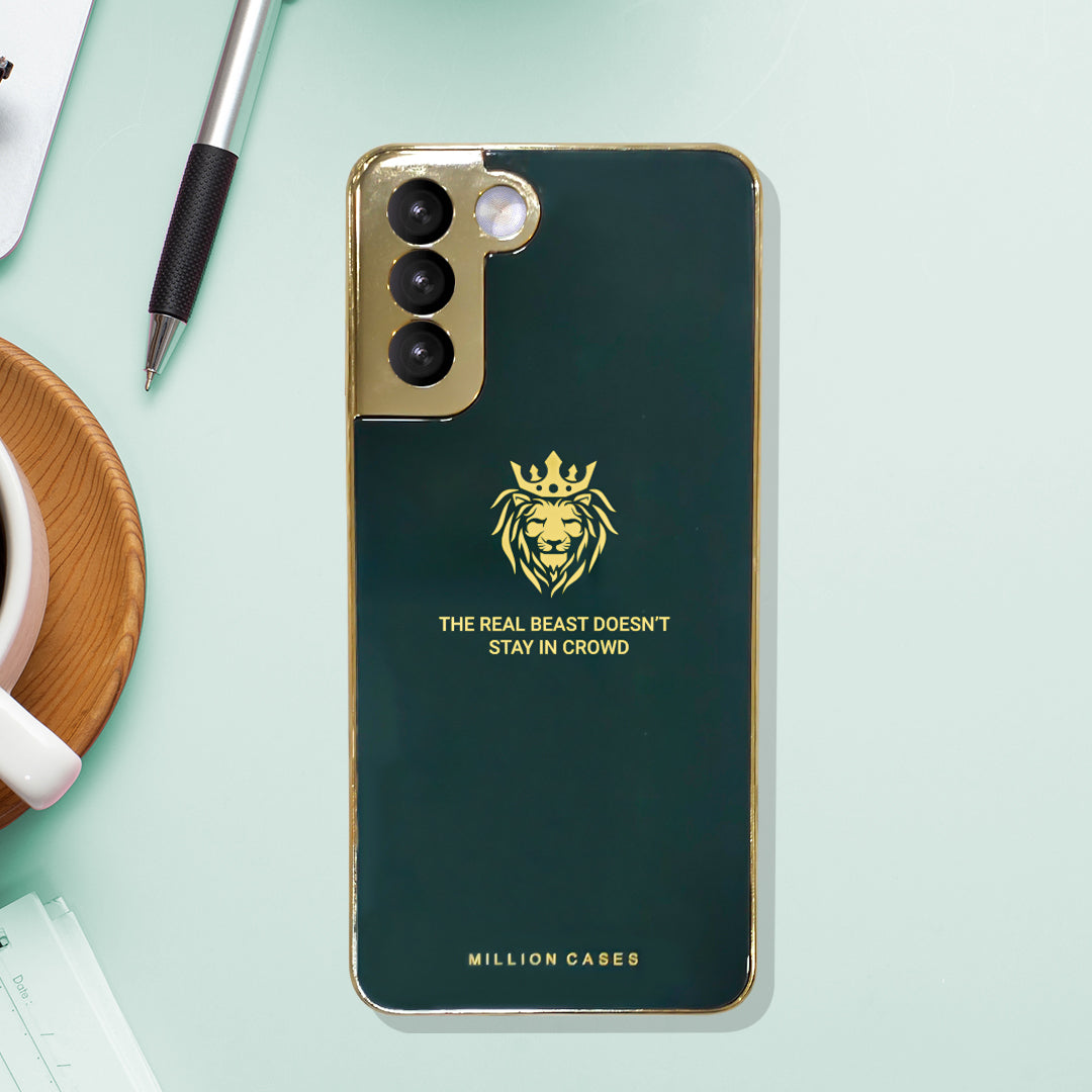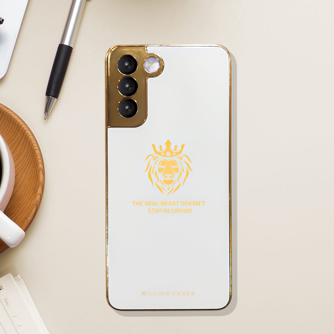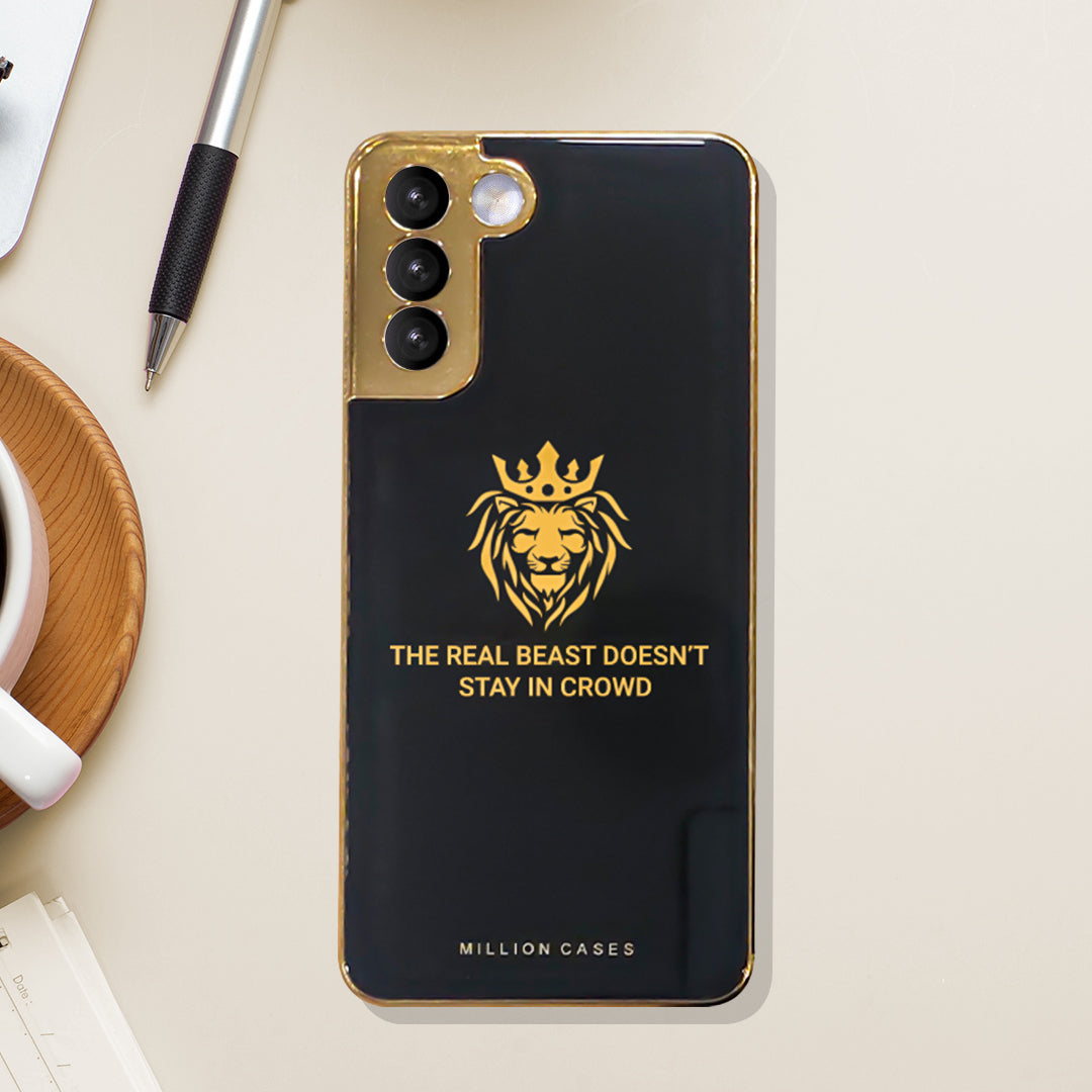 An Attractive Electroplating Glass case with a Popular LION Theme with an inspiring quote "THE REAL BEAST DOESNT STAY IN CROWD " for your premium Smartphone. The frame of the phone case has been Galvanized around the Camera Lens and Border, which makes it Attractive