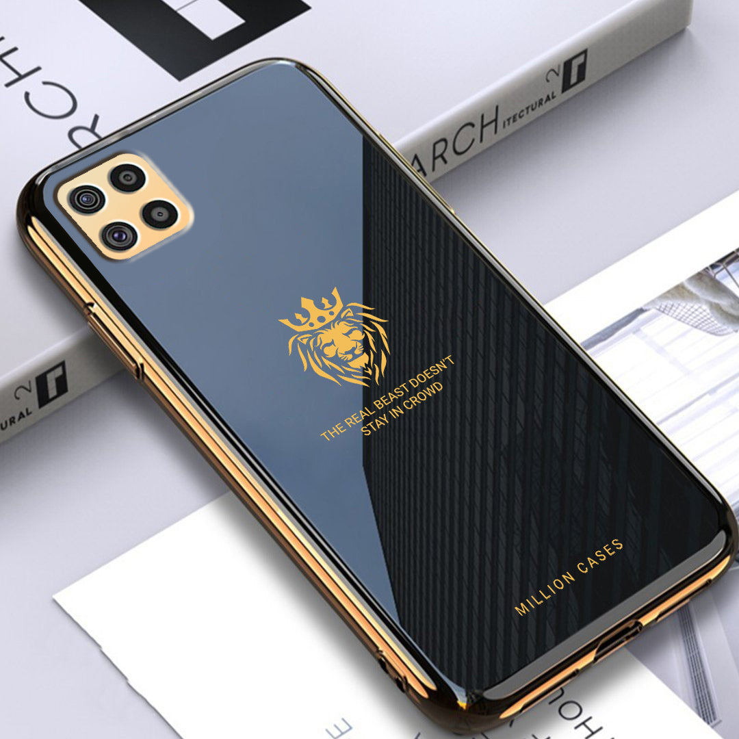An Attractive Electroplating Glass case with a Popular LION Theme with an inspiring quote "THE REAL BEAST DOESNT STAY IN CROWD " for your premium Smartphone. The frame of the phone case has been Galvanized around the Camera Lens and Border, which makes it Attractive..