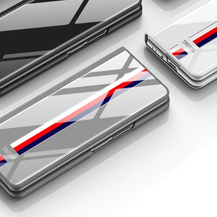 Galaxy Z Fold3 Luxury Colored Strap Glass Flip Case