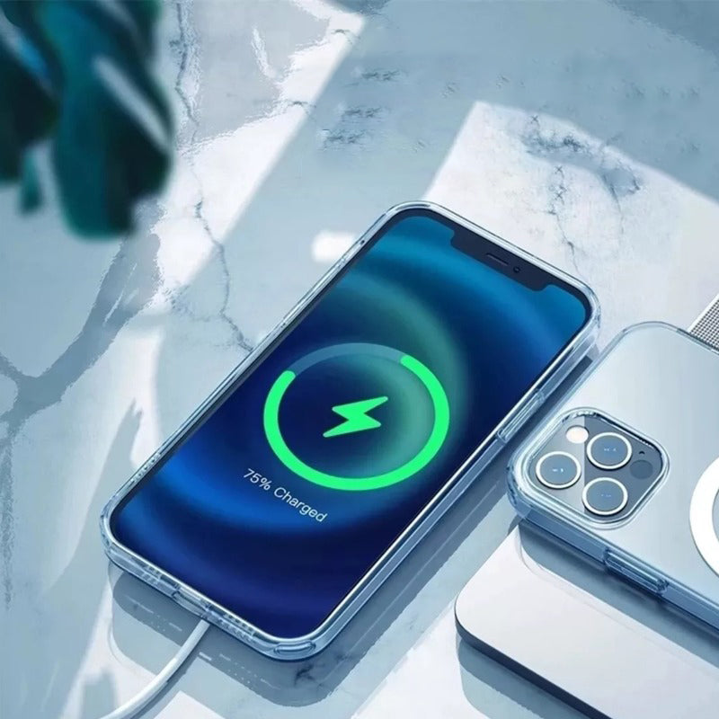 Presenting the MagSafe clear case for iPhone, which allows you to conveniently charge your device without having to remove the case every time. The case is transparent, which allows you to flaunt the beautiful color of the phone.