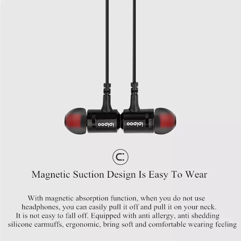 ipipoo Wireless Smart Sport  Stereo Earphone with magnetic adsorption function equipped with anti-allergy is soft and comfortable to wear. with Bluetooth version V4.2, Two devices can be connected simultaneously.