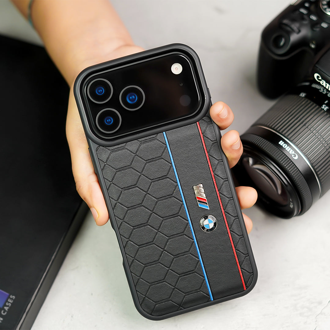 Unleash the spirit of performance with the Torque Line for iPhone 17 Series. Inspired by automotive engineering, this case combines a bold hexagonal texture with sleek racing stripes and premium leather detailing, bringing speed and style straight to your palm.
