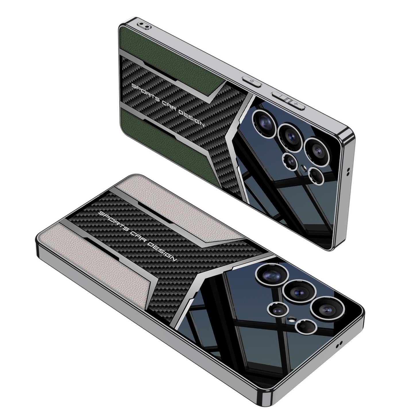 Elevate your device’s style and protection with the Electroplated Futuristic Faux Leather Case, a perfect blend of sophistication and durability. Designed for the modern professional, this case features a premium carbon fiber pattern fused with sleek leather accents, delivering an executive, high-performance look..