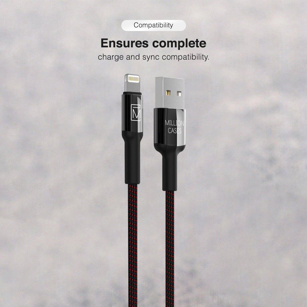 The All-New Million Cases ® Lightning Charging Cable featuring Nylon Braiding Makes it Durable and Long Lasting which Definitely Lasts Longer than a normal Charging Cable.