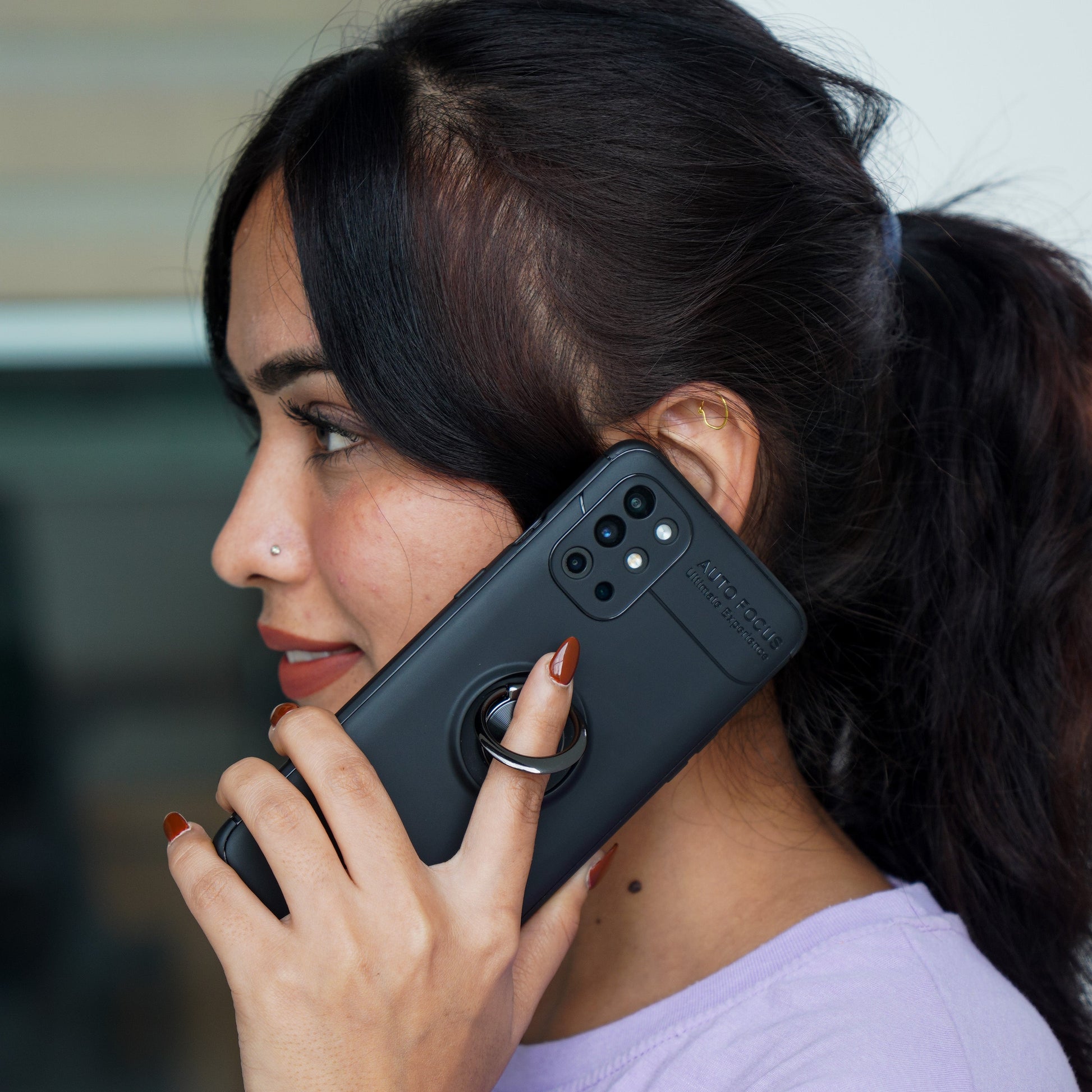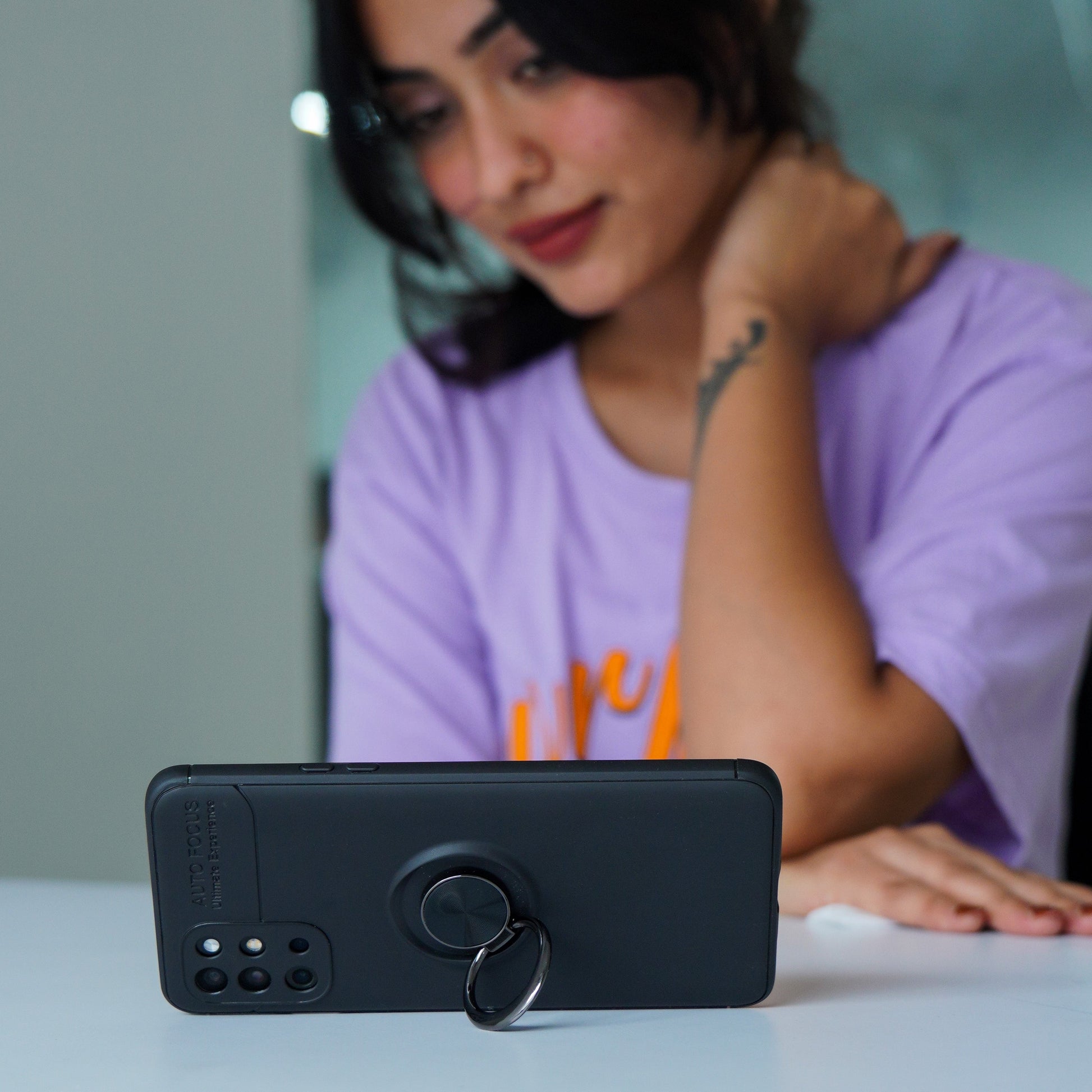 Metallic Finger Ring Holder Matte Case with in-built soft silicone is fully functional and protects your smartphone against impact and accidental falls.