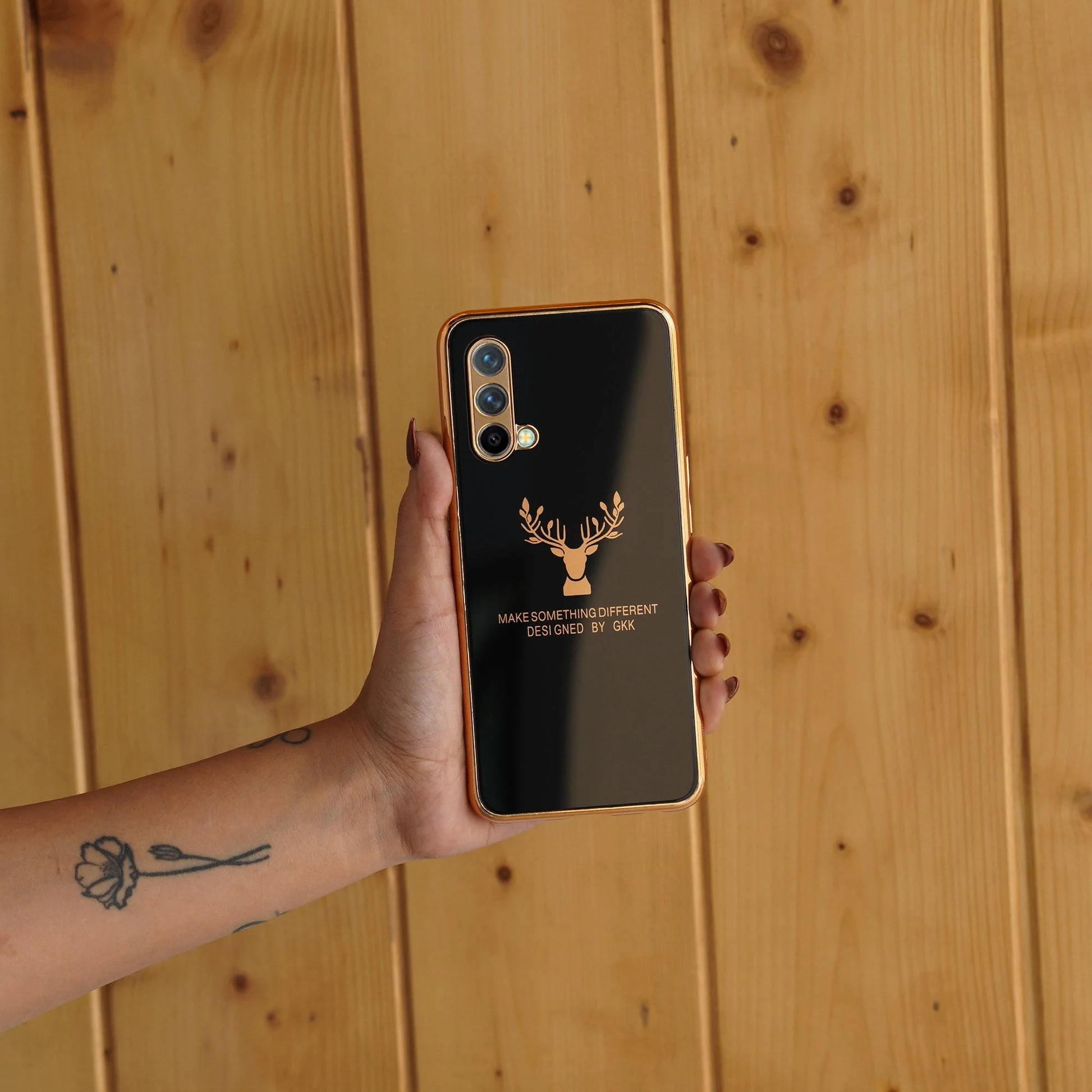 An Attractive Electroplating Glass case with Popular Reindeer Theme with an inspiring quote "MAKE SOMETHING DIFFERENT " for your premium Smartphone. The frame of the phone case has been Galvanized around the Camera Lens and Border, which makes it Attractive.