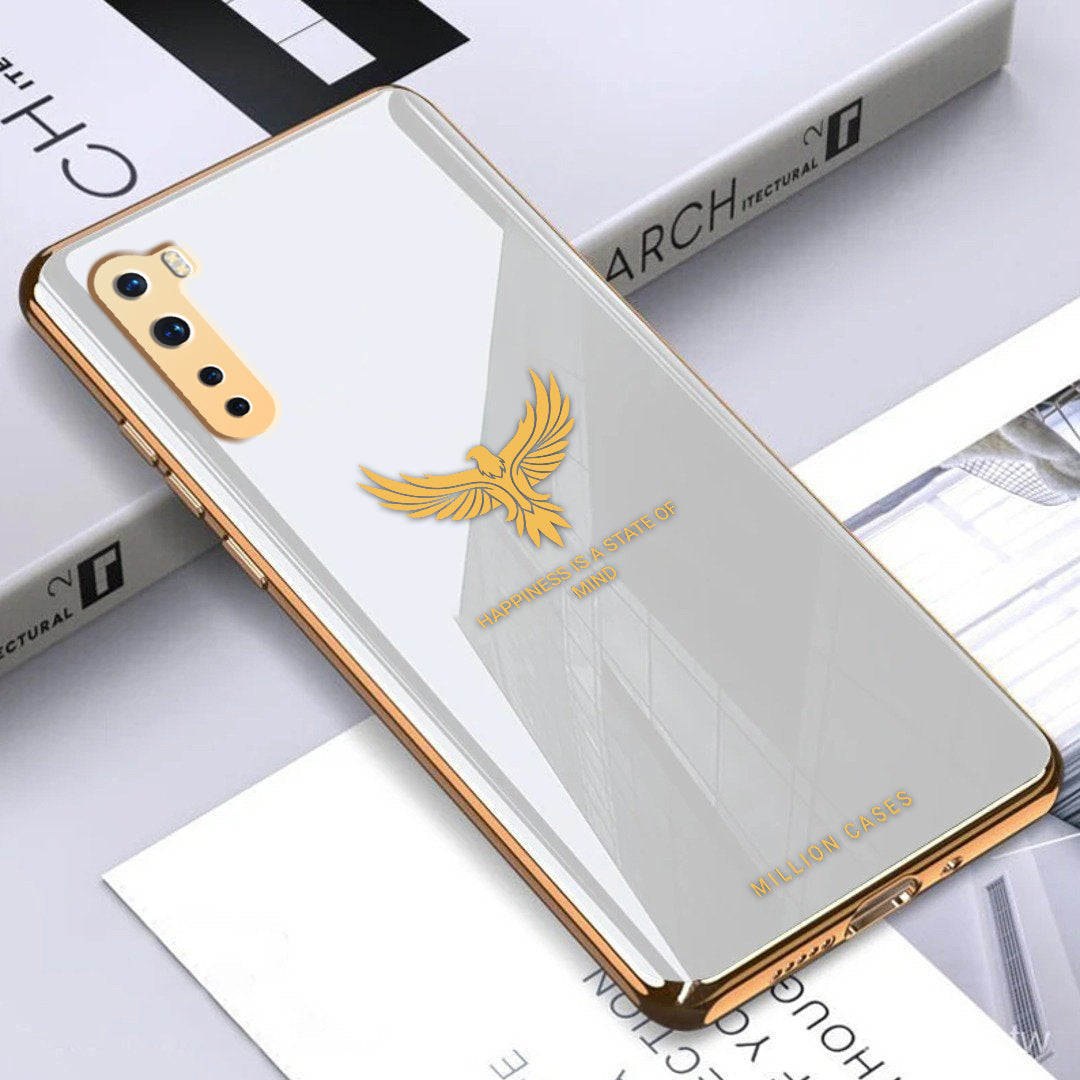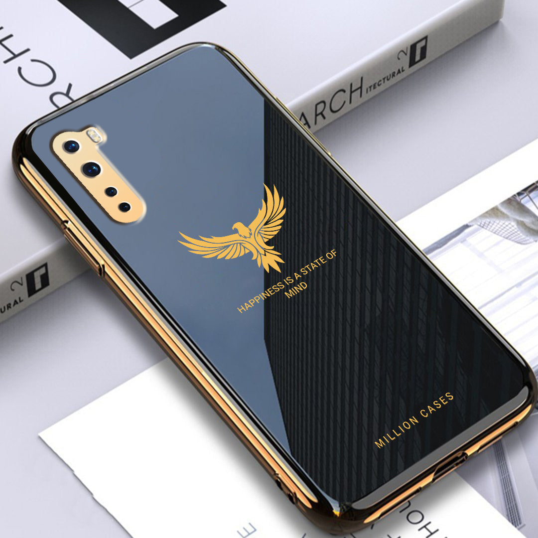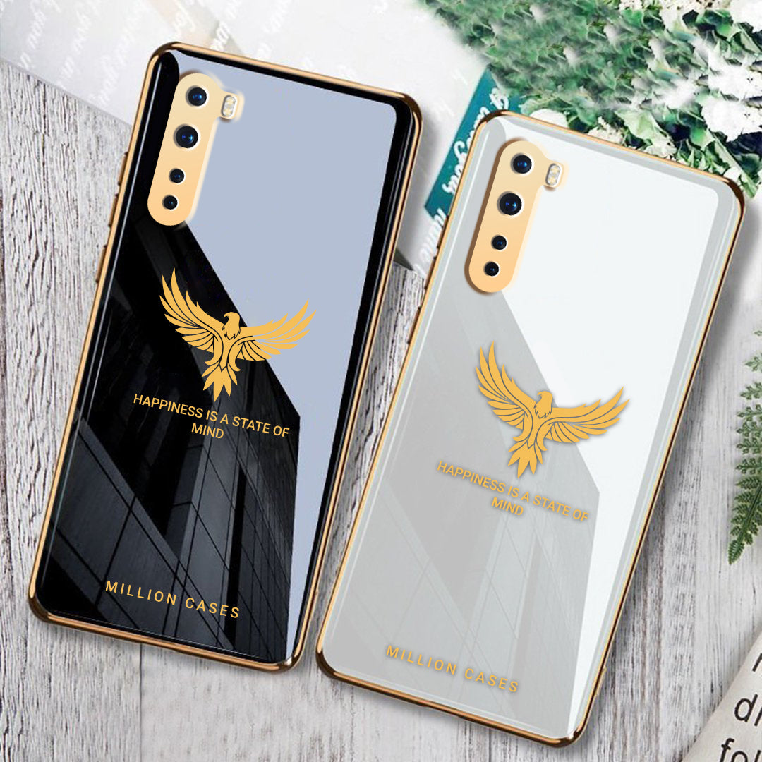 An Attractive Electroplating Glass case with a Popular Eagle Theme with an inspiring quote "HAPPINESS IS A STATE OF MIND " for your premium Smartphone. The frame of the phone case has been Galvanized around the Camera Lens and Border, which makes it Attractive.