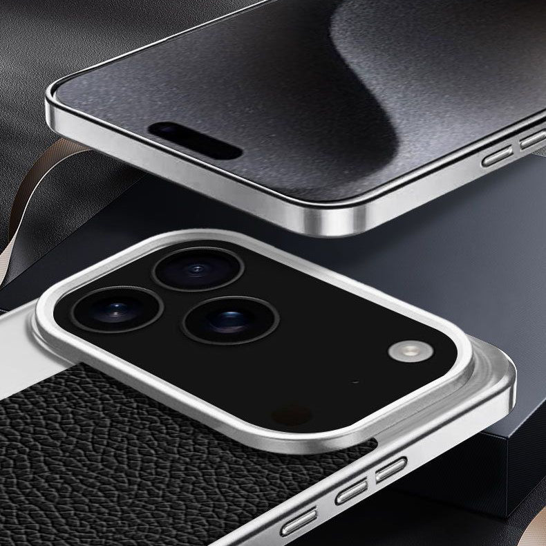 • Premium Hybrid Design: Strong silver metal frame paired with textured leather back for a stylish, executive look.