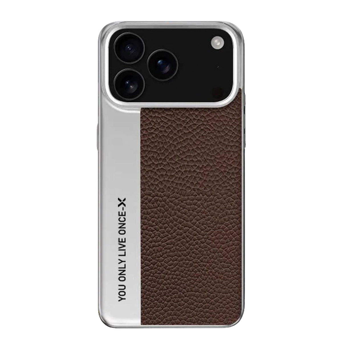 Make every moment count with the Only Live Once case. Designed with a sleek silver metal frame and a textured black leather back, this case combines durability with a bold statement. The engraved “YOU ONLY LIVE ONCE” detail adds an edge of motivation and modern style, making it perfect for those who live life without limits.