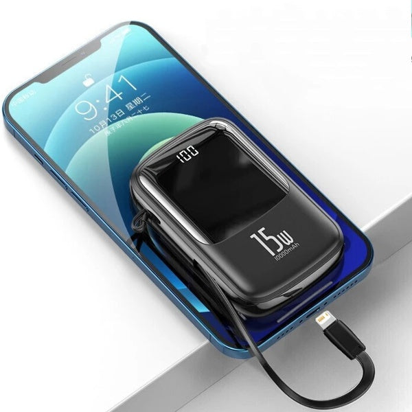 QPow Digital Display 10000mAh Powerbank - iPhone Lightning Cable
