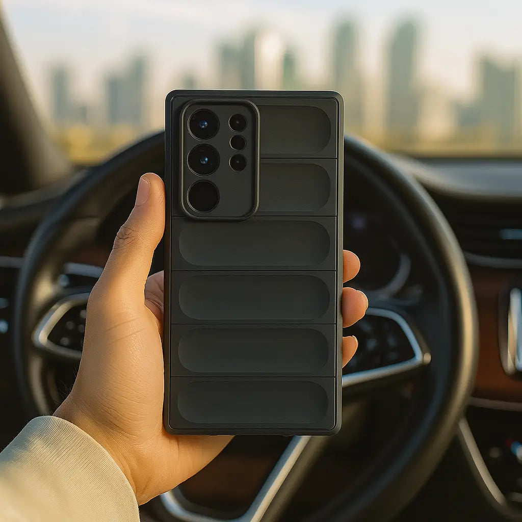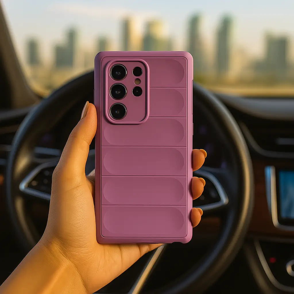 Stand out from the crowd with our Silky Shield Camera Protection Case. With a slim profile, this stylish shockproof case protects your brand-new phone without adding bulk. The case features a unique puffer pattern on the back, which adds a stylish touch to the phone's appearance.
