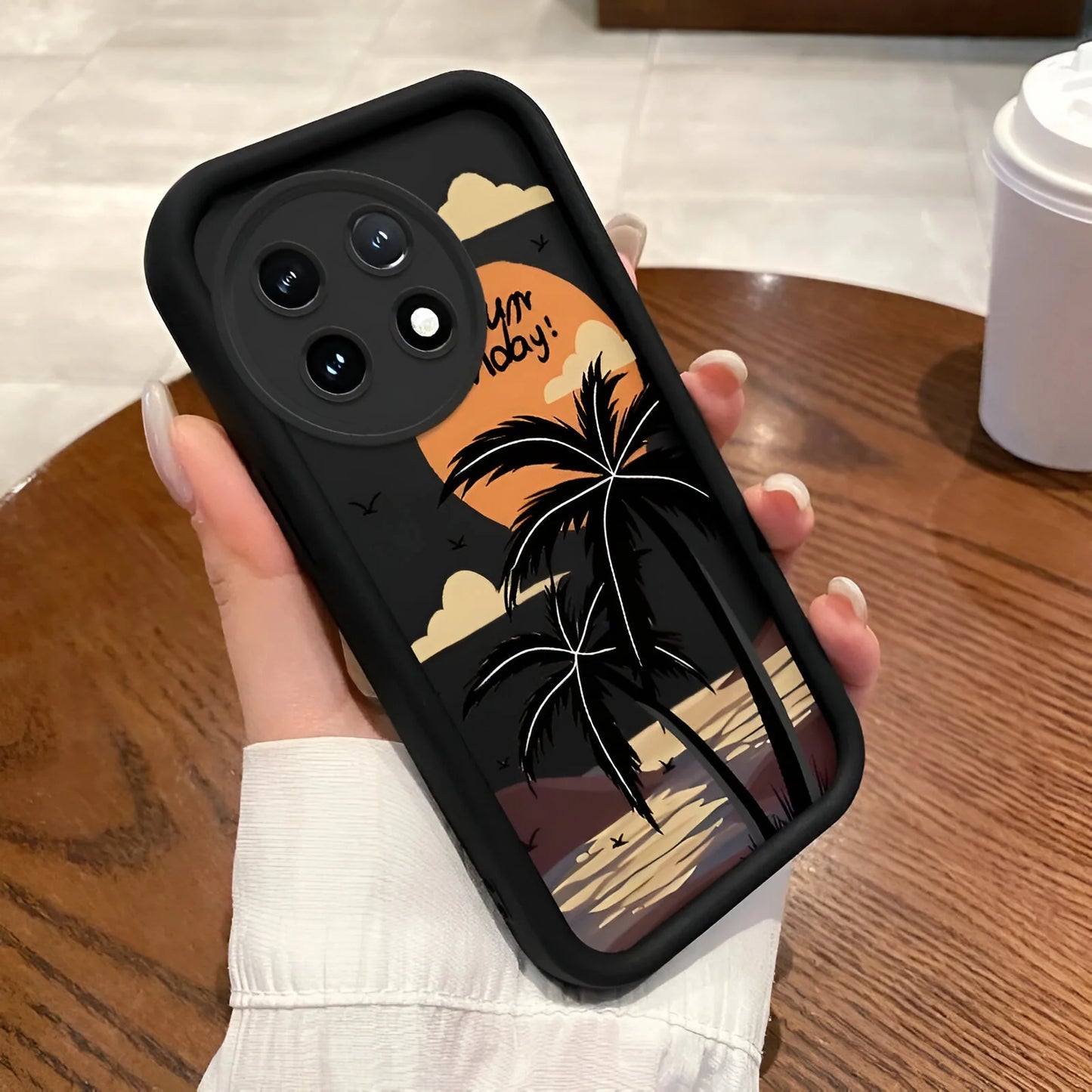 • Tropical-Inspired Design – Sunset and palm tree graphics add a chill beach vibe.