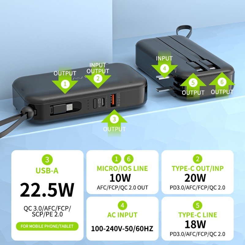 • Type-C line output: 5V=3A/9V=2A/12V=1.5A.